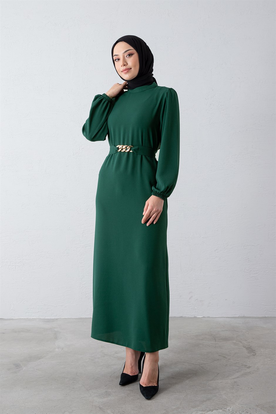 Aksesuar Kemerli Krep Elbise Yeşil (265222952601)