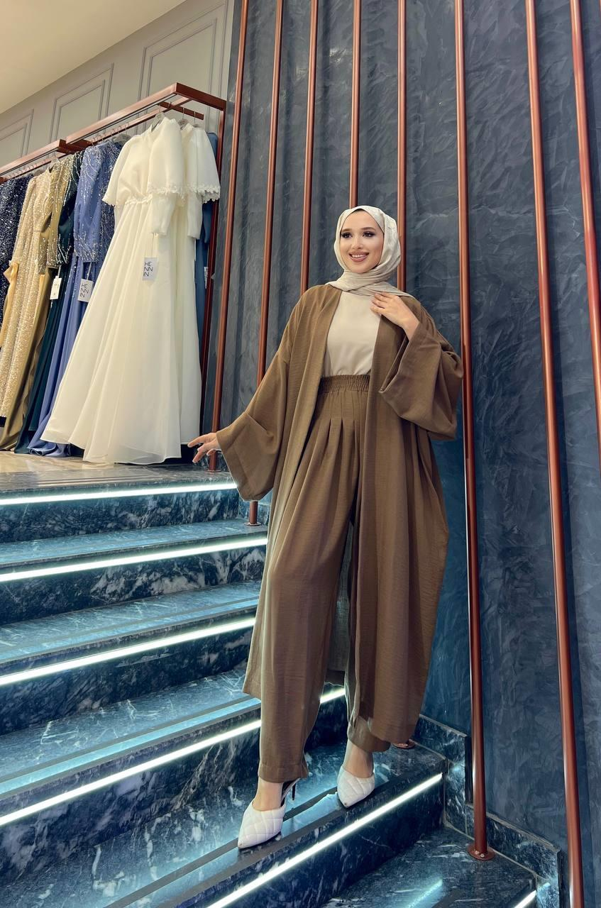 Manken üzerinde ki numune '1' bedendir. Pantalon beli lastiklidir. Bedenler arasında 1-2 cm fark olabilmektedir.