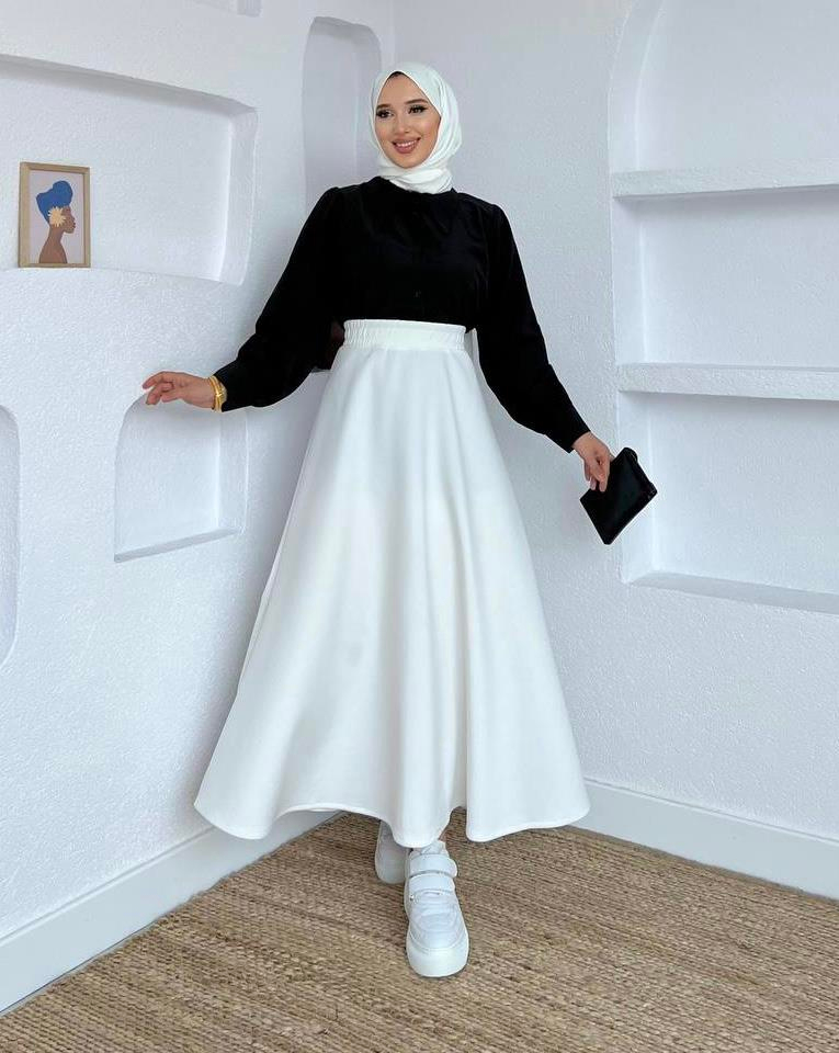 Manken üzerinde ki numune '1' bedendir. Bedenler arasında 1-2 cm fark edebilir. Etek beli lastikli, scuba kumaştır.