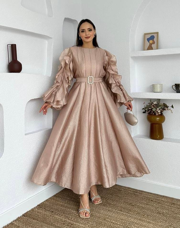 Moda Ala Eftelya Organze Elbise Bej - Doğal ve Zarif Şıklık