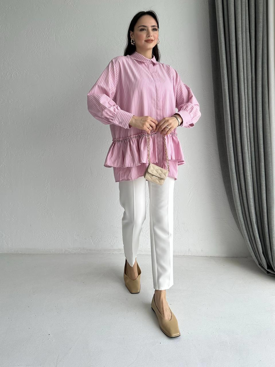 Eteği Taşlı Çizgili Gömlek Pembe (344241486101)