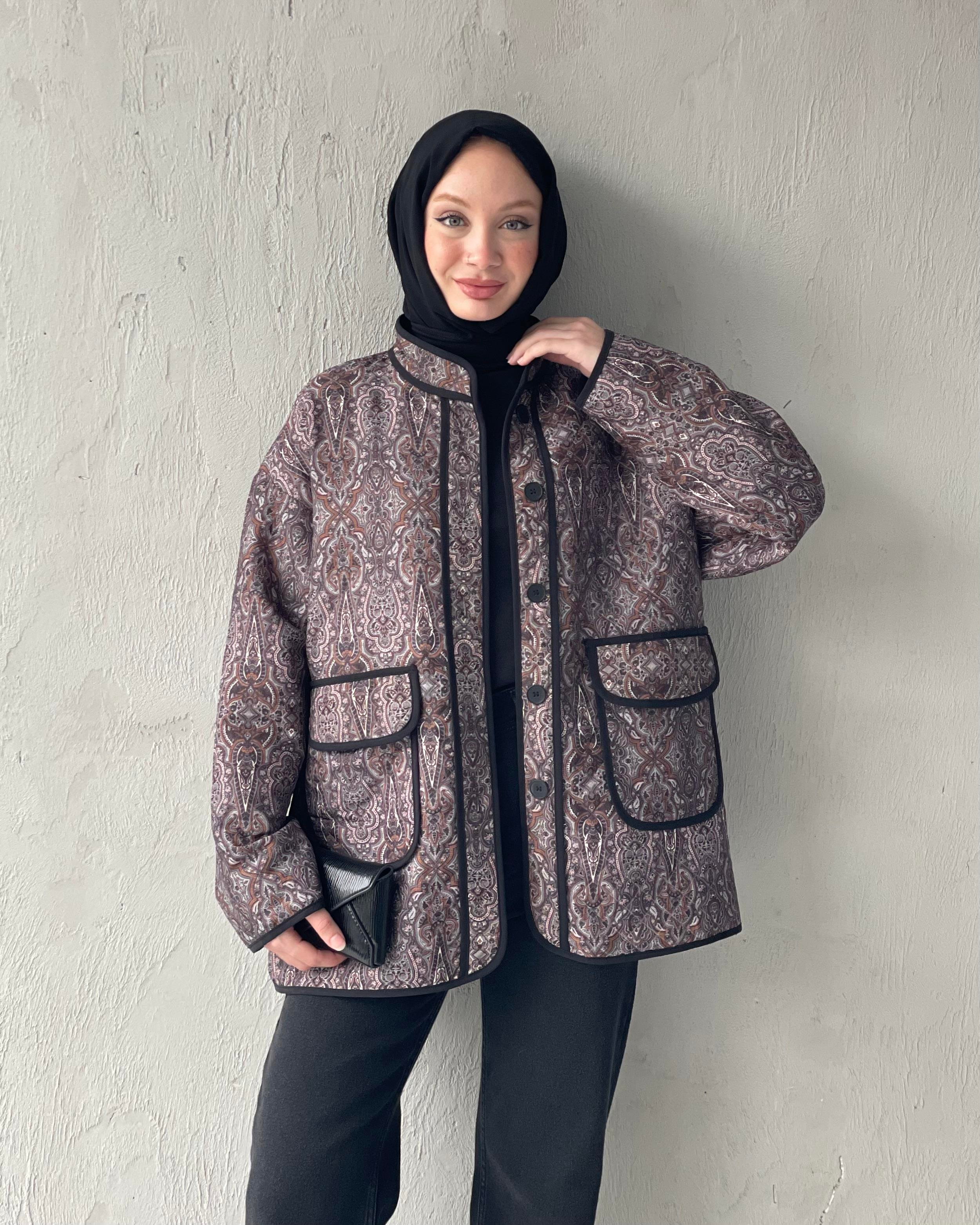 ETNİK DESEN KAPİTONE CEKET Siyah