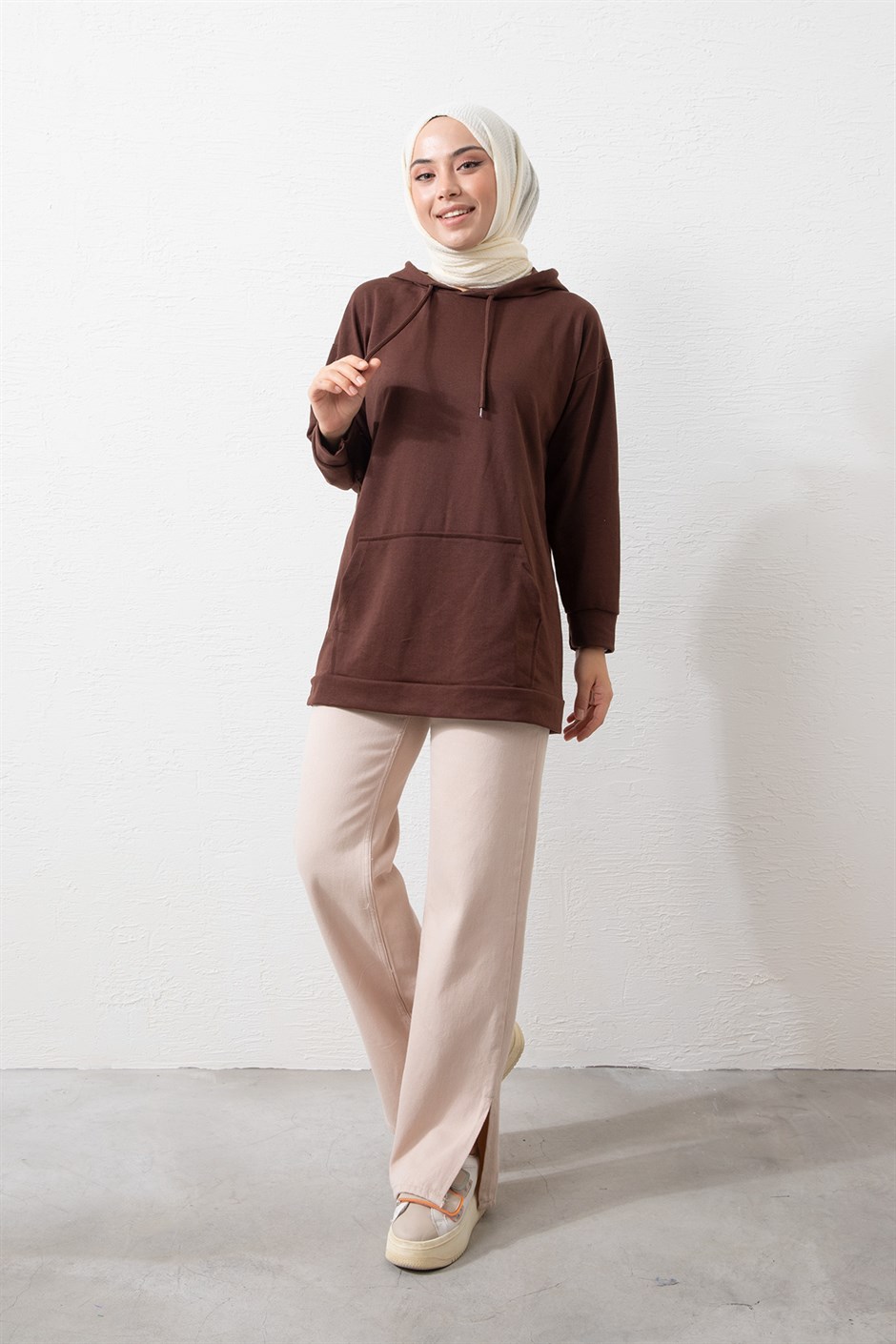 Kapşonlu Spor Sweat Kahverengi