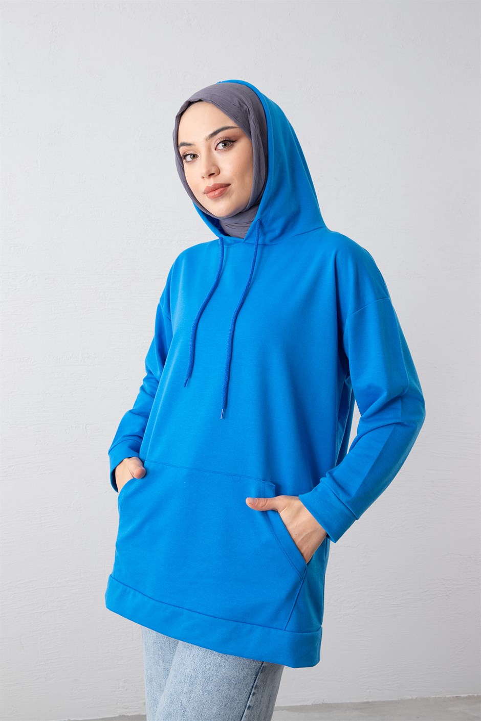 Kapüşonlu Spor Sweat Mavi