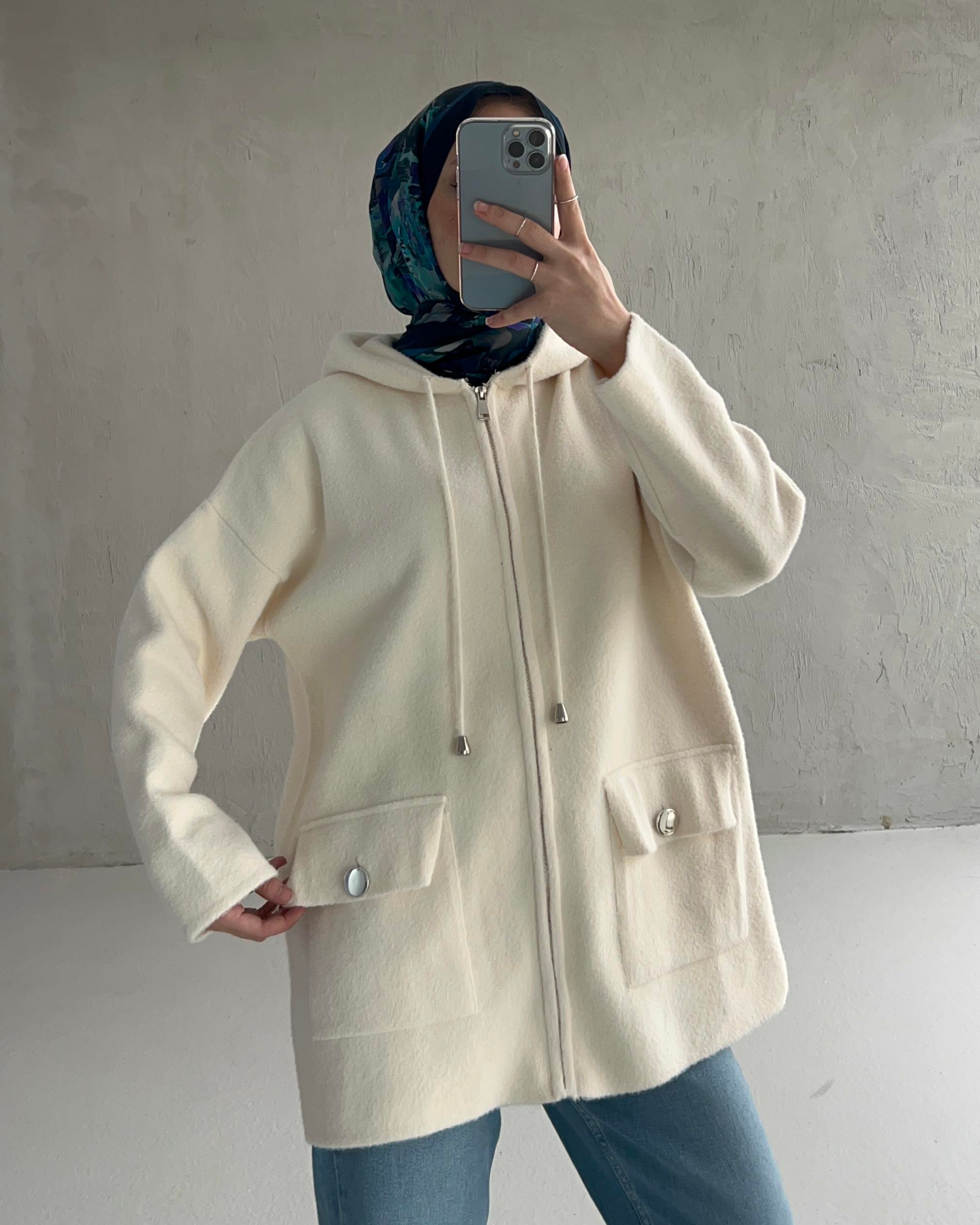 KEÇE KAPÜŞONLU CEKET Ekru