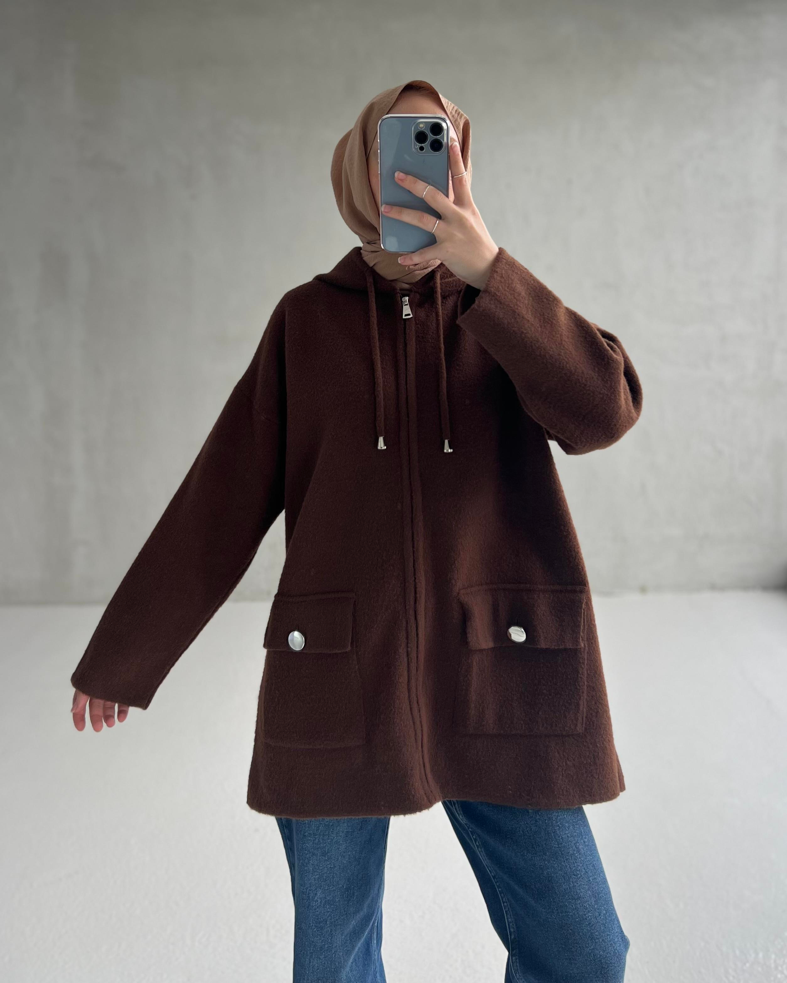 KEÇE KAPÜŞONLU CEKET Kahverengi