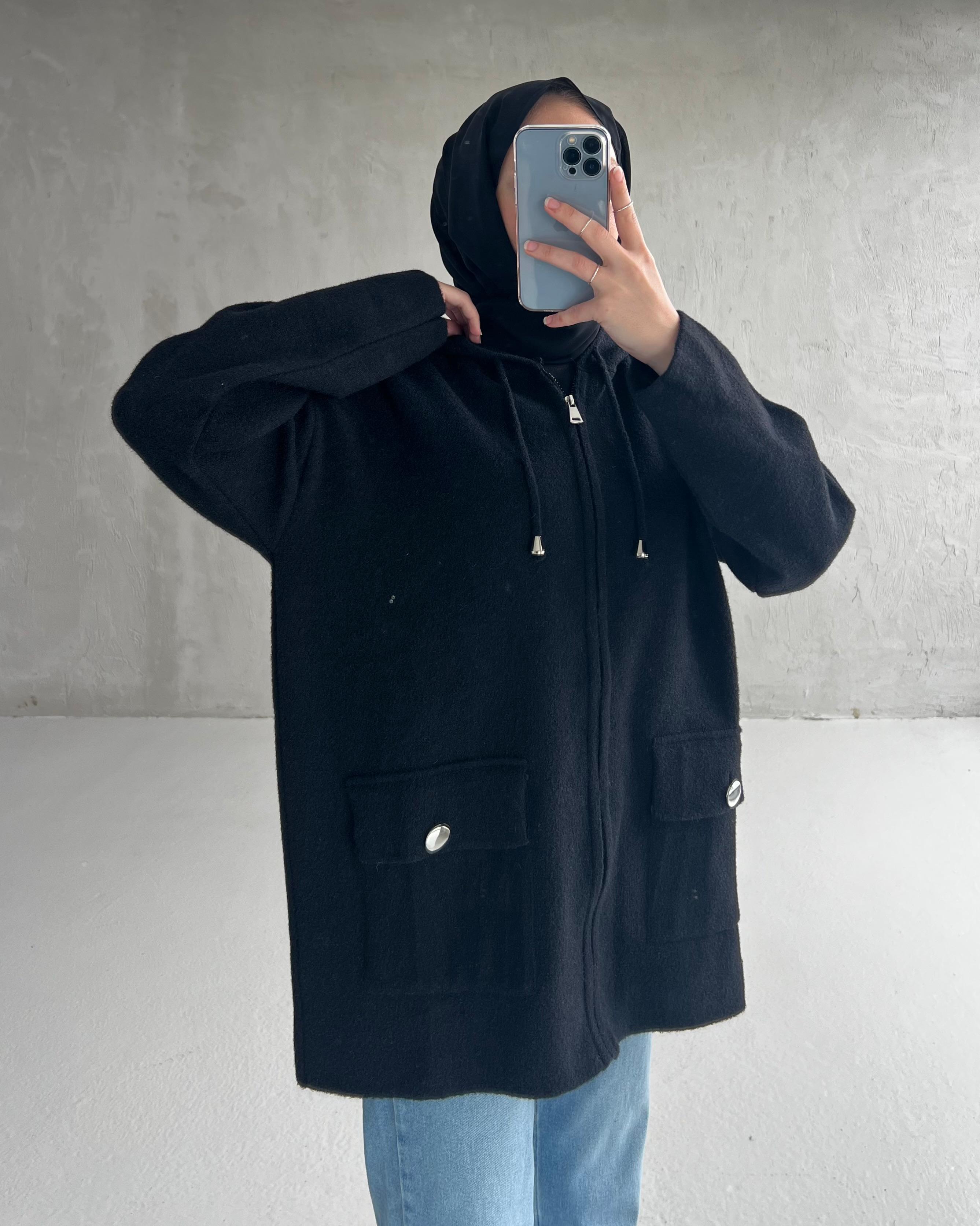 KEÇE KAPÜŞONLU CEKET Siyah (177244440791)