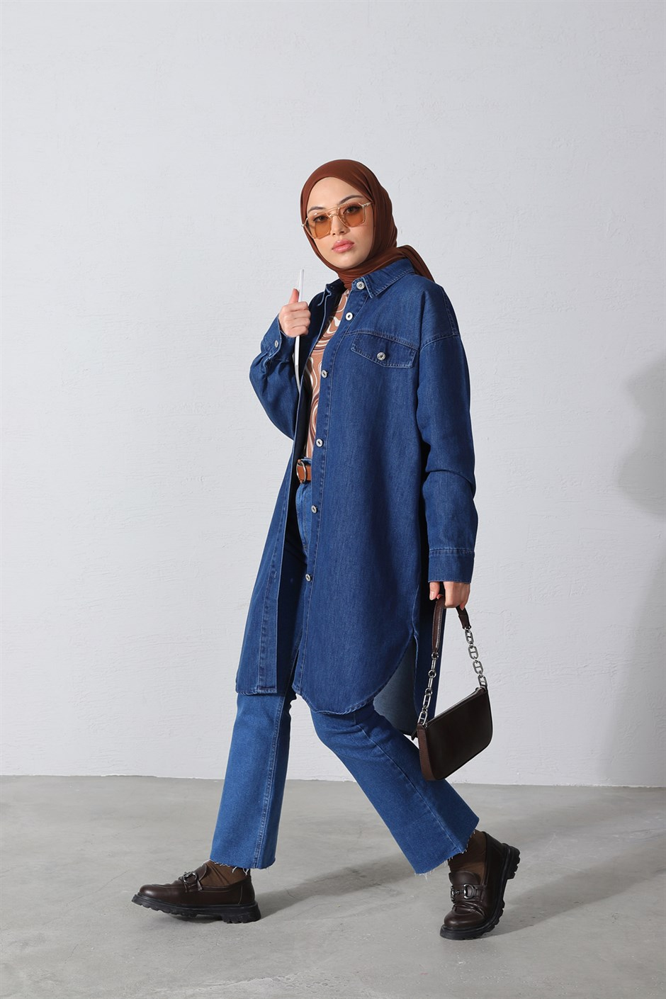 Kemerli Uzun Kot Ceket Koyu Kot (105231685701)