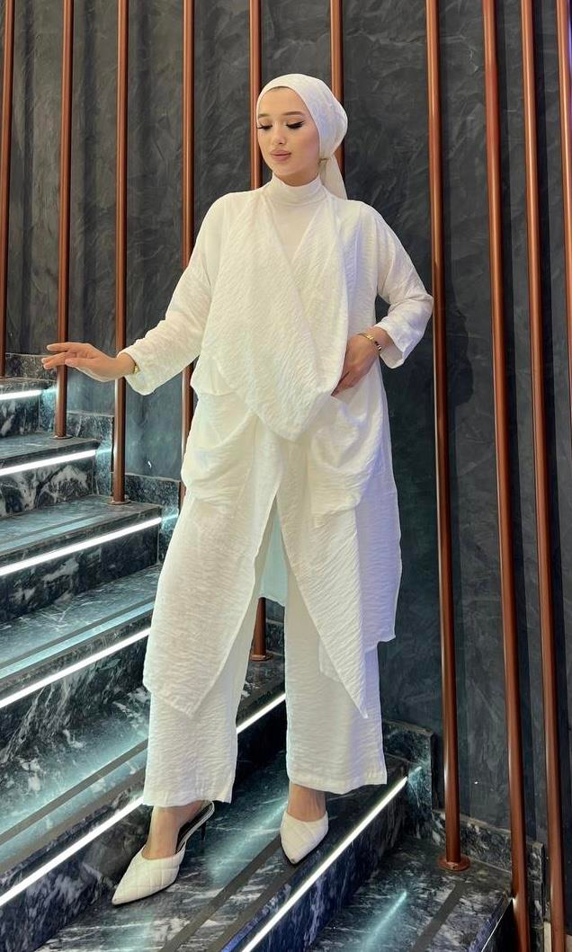 Önü Parçalı Salaş Keten Takım Ekru