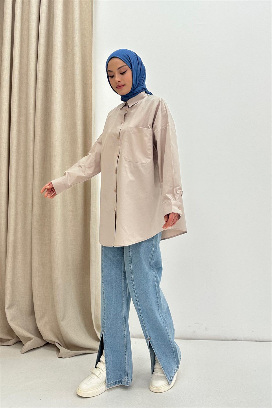 Tek Cepli Poplin Gömlek Taş (106222258001)