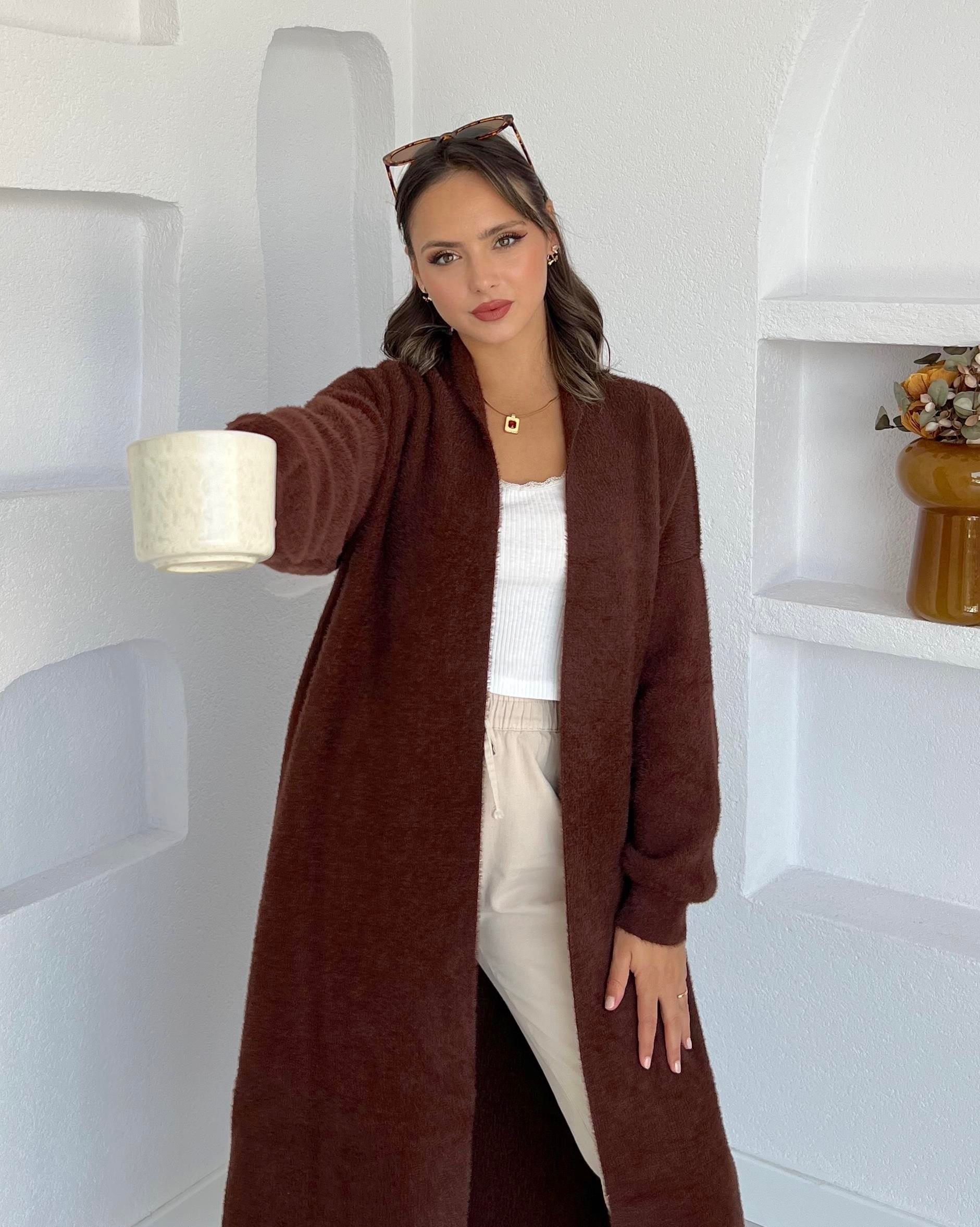 Moda Ala Winter Triko Hırka Kahverengi | Örgü Desenli Rahat Hırka