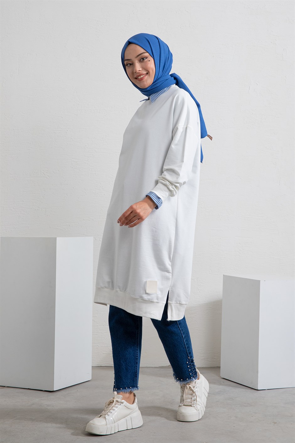 Yanı Yırtmaçlı Tunik Beyaz - Moda AlaYanı Yırtmaçlı Tunik Beyaz